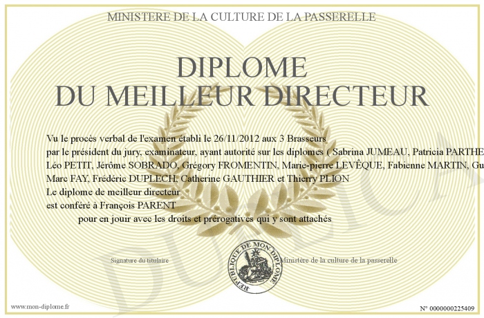 Envoyez par email votre Diplôme du meilleur directeur personalisé