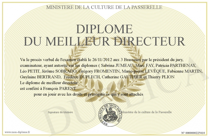 Envoyez par email votre Diplôme du meilleur directeur personalisé