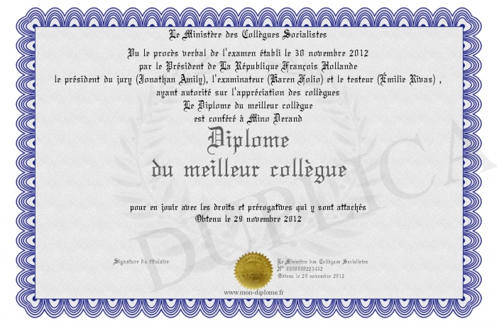 Envoyez par email votre Diplôme du meilleur collègue personalisé