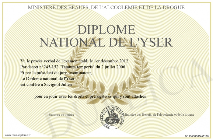 Envoyez par email votre Diplôme national de l'Yser personalisé