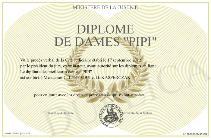 Envoyez par email votre Diplôme de dames -pipi- personalisé