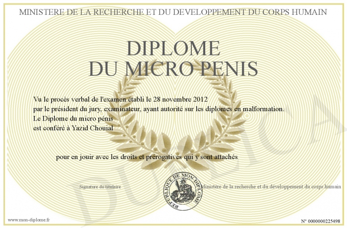 Envoyez par email votre Diplôme du micro pénis personalisé