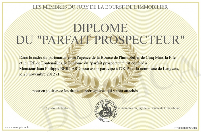Envoyez par email votre Diplôme du -parfait prospecteur- personalisé