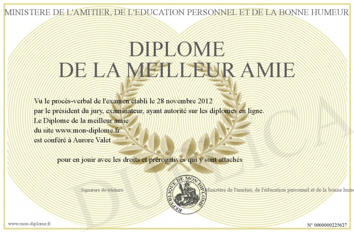 Envoyez par email votre Diplôme de la meilleur amie personalisé