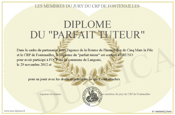 Envoyez par email votre Diplôme du -parfait tuteur- personalisé