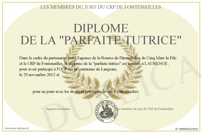 Envoyez par email votre diplome de la -parfaite tutrice- personalisé