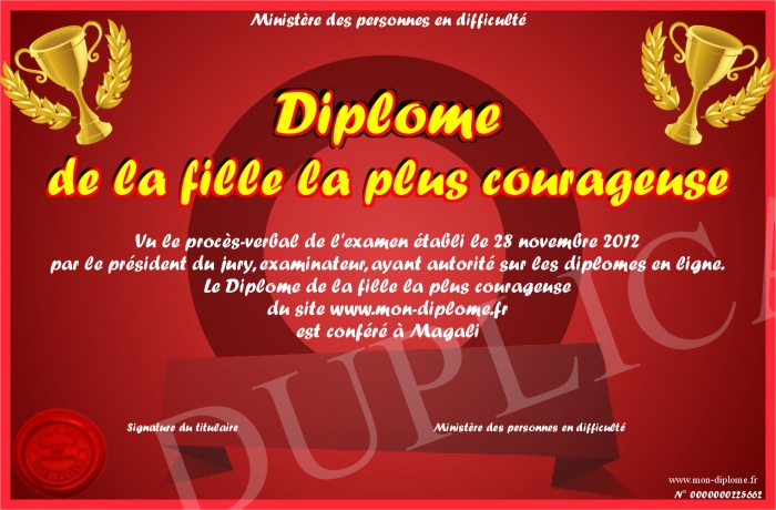 Envoyez par email votre Diplôme de la fille la plus courageuse personalisé