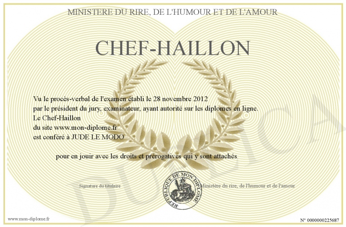 Envoyez par email votre Chef-Haillon personalisé