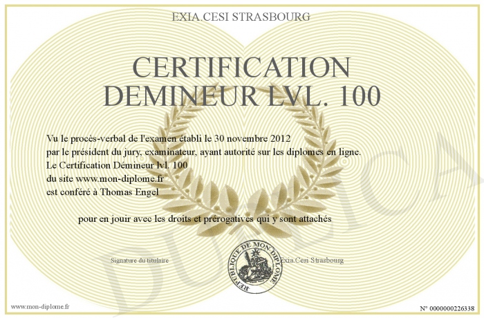 Envoyez par email votre Certification Démineur lvl. 100 personalisé