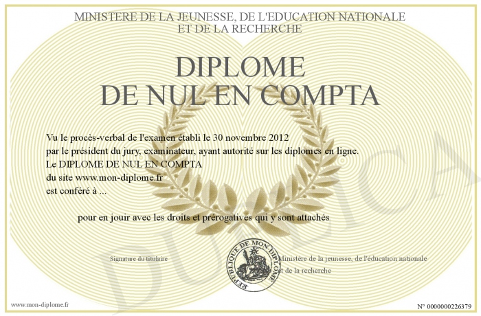 Envoyez par email votre DIPLOME DE NUL EN COMPTA personalisé