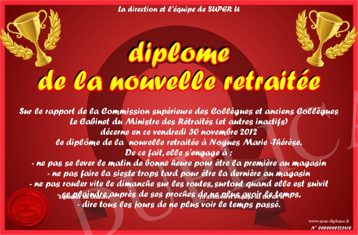 Envoyez par email votre diplôme de la nouvelle retraitée personalisé