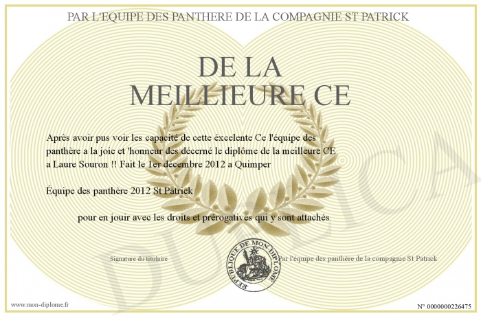 Envoyez par email votre De la meillieure CE personalisé