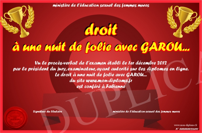 Envoyez par email votre droit à une nuit de folie avec GAROU... personalisé