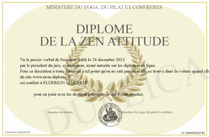 Envoyez par email votre Diplôme de la ZEN ATTITUDE personalisé
