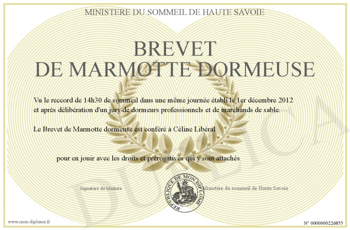 Envoyez par email votre Brevet de Marmotte dormeuse personalisé
