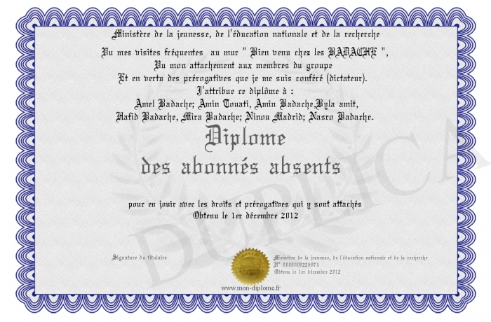 Envoyez par email votre Diplôme des abonnés absents personalisé