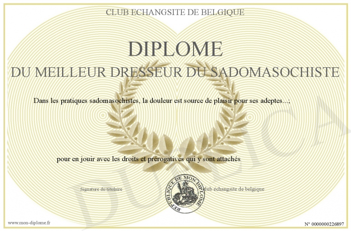 Envoyez par email votre diplome du meilleur dresseur du sadomasochiste personalisé