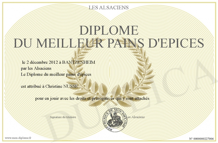 Envoyez par email votre Diplôme du meilleur pains d'épices personalisé