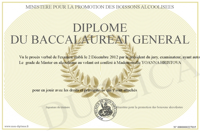 Envoyez par email votre Diplôme du baccalaureat général personalisé