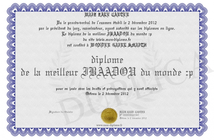 Envoyez par email votre diplome de la meilleur IBAADOU du monde :p personalisé