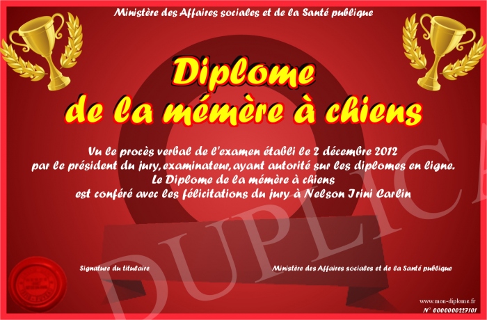 Envoyez par email votre Diplôme de la mémère à chiens personalisé