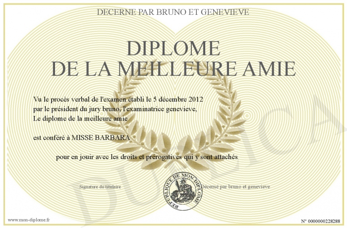 Envoyez par email votre diplome de la meilleure amie personalisé
