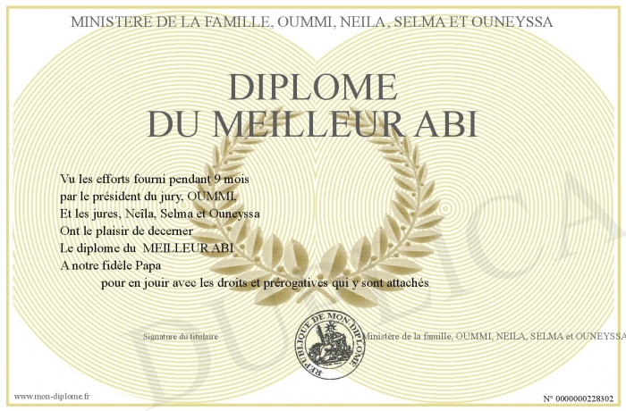 Envoyez par email votre diplome du meilleur ABI personalisé