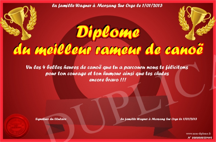 Envoyez par email votre Diplôme du meilleur rameur de canoë personalisé