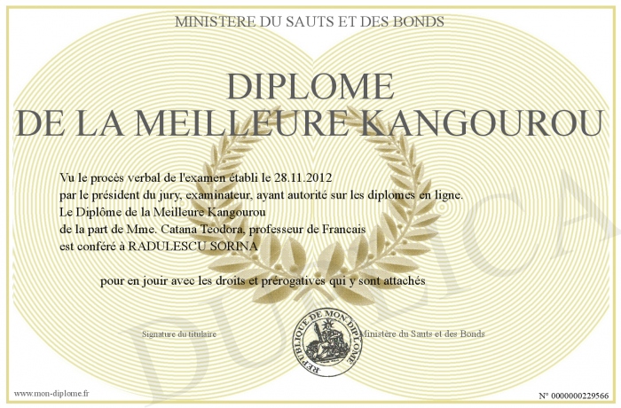 Envoyez par email votre Diplôme de la Meilleure Kangourou personalisé