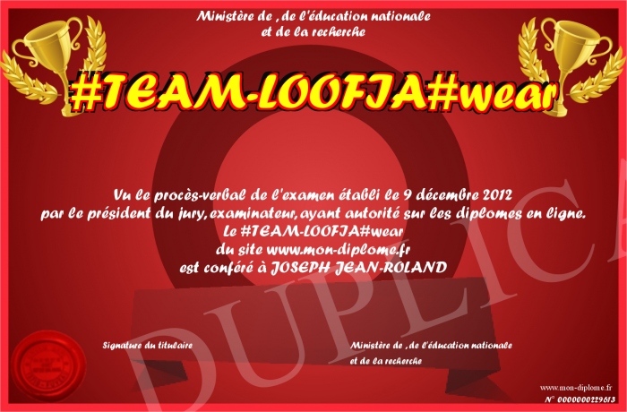 Envoyez par email votre #TEAM-LOOFIA#wear personalisé