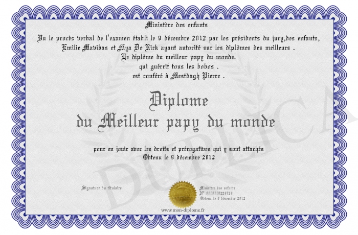 Envoyez par email votre Diplôme du Meilleur papy du monde personalisé