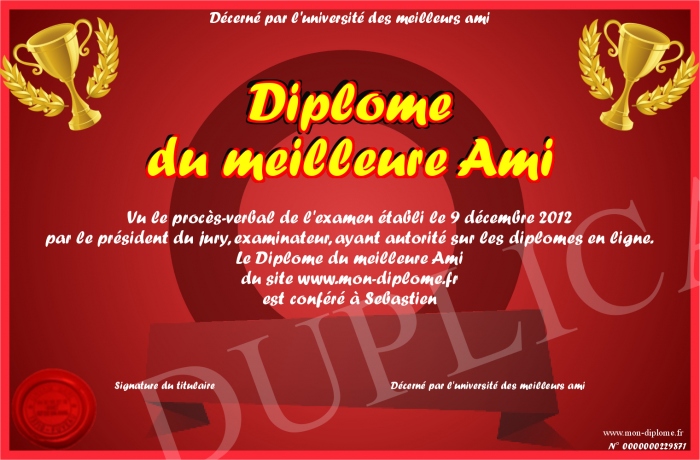Envoyez par email votre Diplome du meilleure Ami personalisé