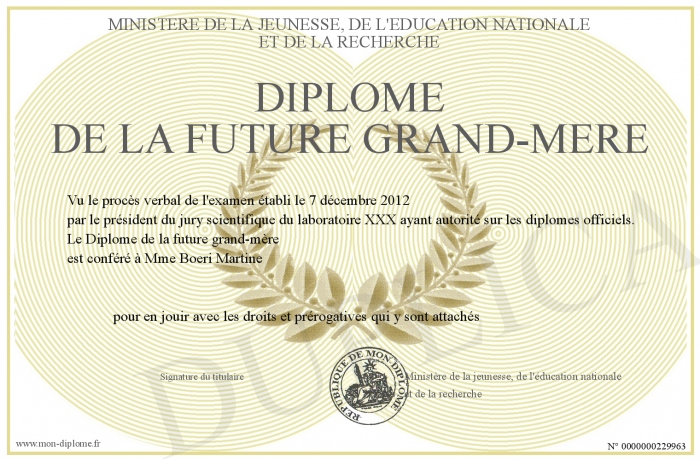 Envoyez par email votre Diplôme de la future grand-mère personalisé