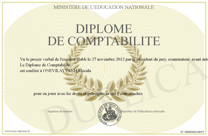 Envoyez par email votre Diplôme de Comptabilité personalisé