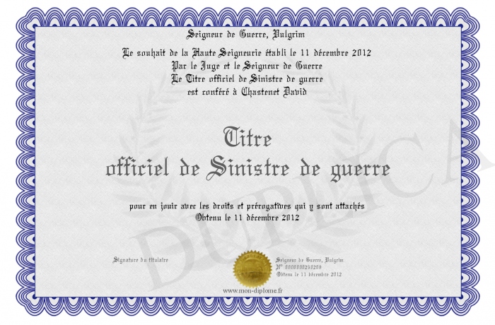 Envoyez par email votre Titre officiel de Sinistre de guerre personalisé
