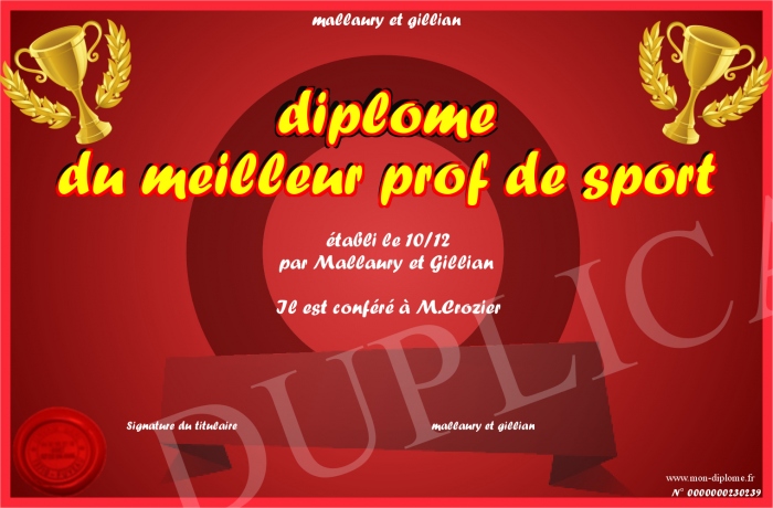 Envoyez par email votre diplome du meilleur prof de sport personalisé