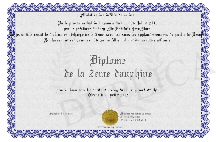 Envoyez par email votre Diplome de la 2eme dauphine personalisé