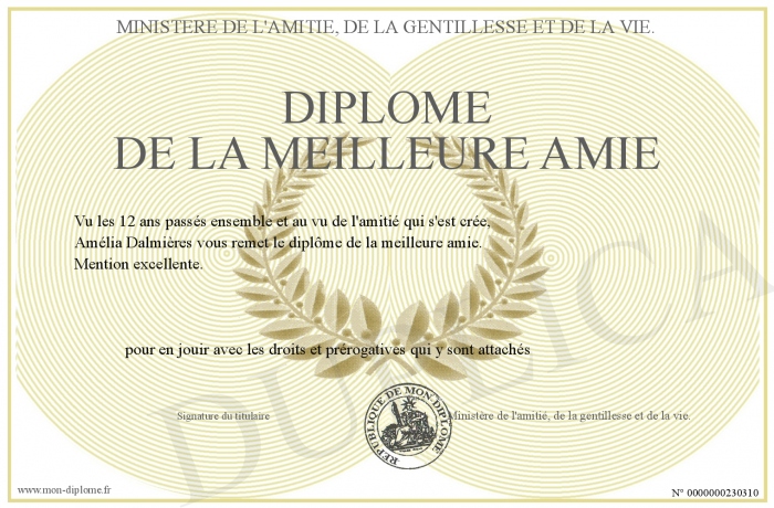 Envoyez par email votre Diplôme de la meilleure amie personalisé