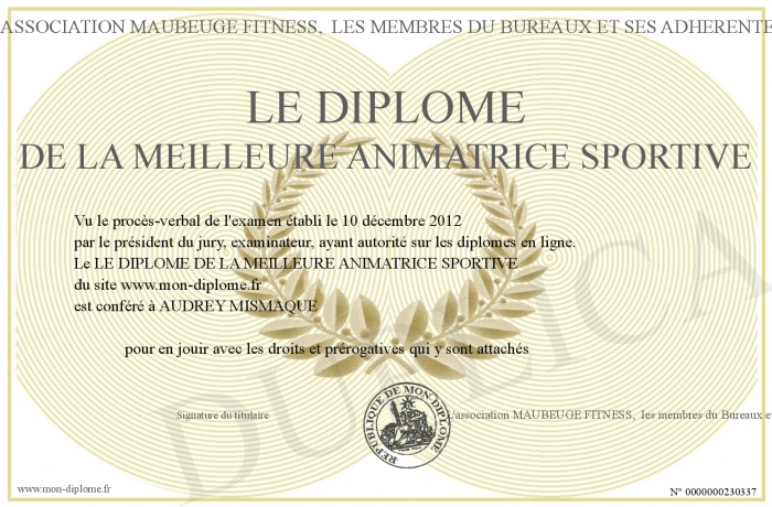 Envoyez par email votre LE DIPLOME DE LA MEILLEURE ANIMATRICE SPORTIVE personalisé