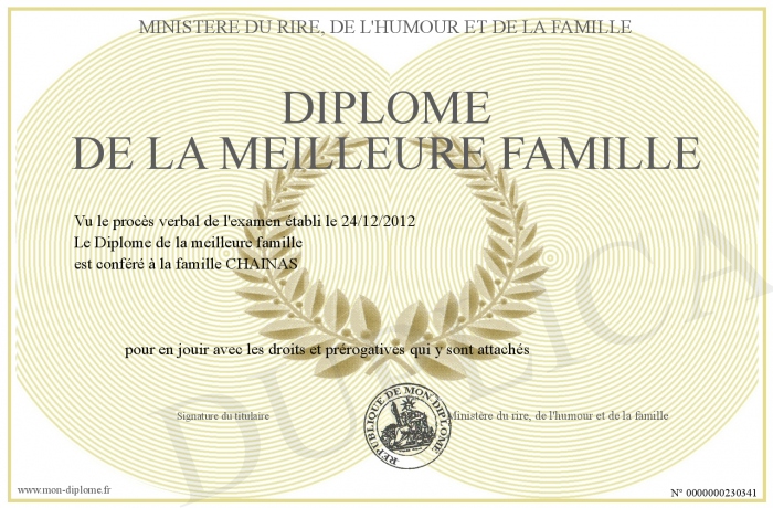 Envoyez par email votre Diplome de la meilleure famille personalisé