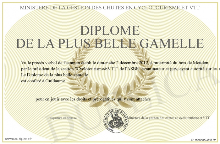 Envoyez par email votre Diplôme de la plus belle gamelle personalisé
