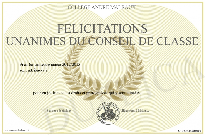 Envoyez par email votre félicitations unanimes du conseil de classe personalisé