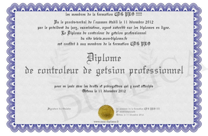 Envoyez par email votre Diplôme de contrôleur de getsion professionnel personalisé