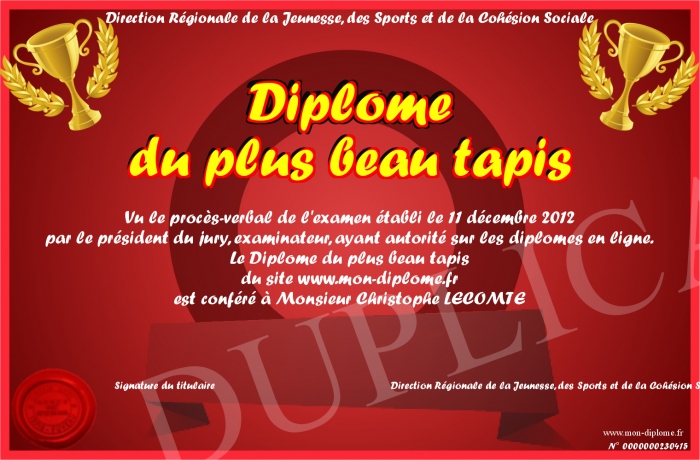Envoyez par email votre Diplome du plus beau tapis personalisé