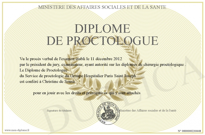 Envoyez par email votre Diplôme de Proctologue personalisé