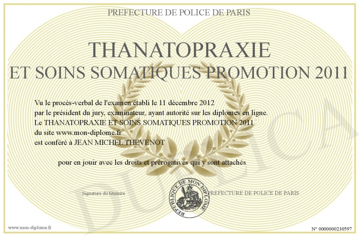 Envoyez par email votre THANATOPRAXIE ET SOINS SOMATIQUES PROMOTION 2011 personalisé