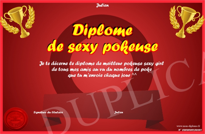 Envoyez par email votre Diplôme de sexy pokeuse personalisé