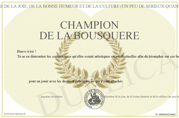 Envoyez par email votre Champion de la Bousquère personalisé