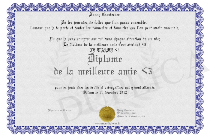 Envoyez par email votre Diplôme de la meilleure amie -3 personalisé