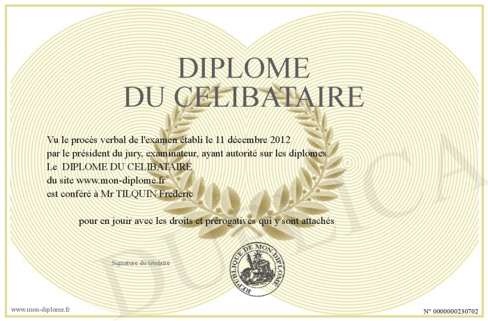 Envoyez par email votre DIPLOME DU CELIBATAIRE personalisé